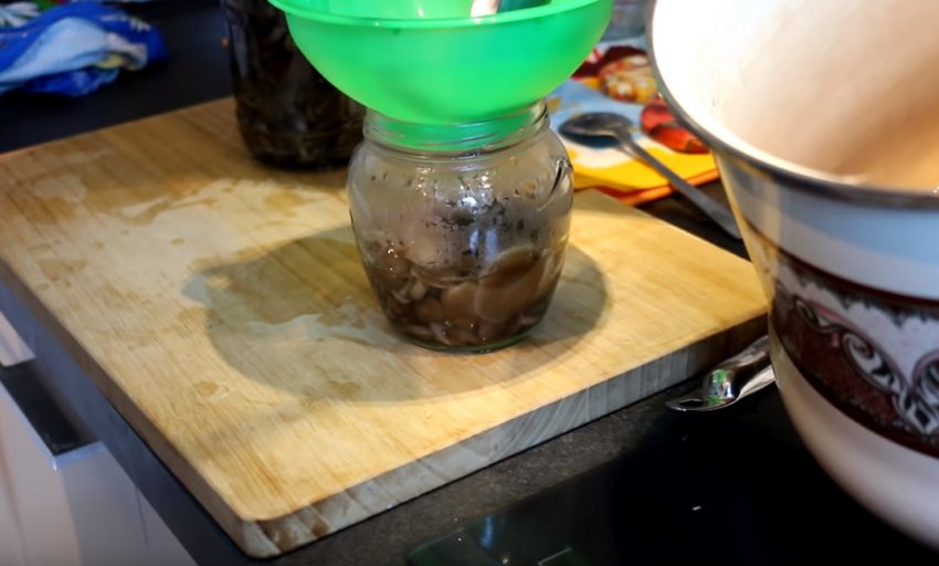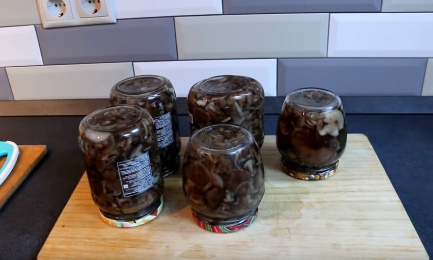 - Гарячі опеньки скласти в банки, герметично закрутити кришками і дати охолонути.