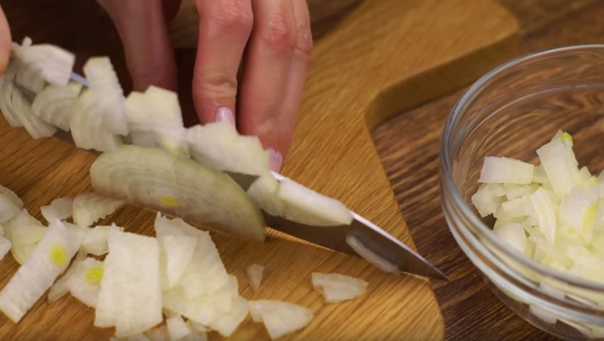 Цибулину необхідно очистити від лушпиння і дрібно порізати.![]()