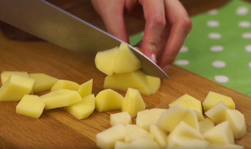 Картоплини почистити, нарізати кубиками середнього розміру.![]()