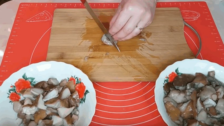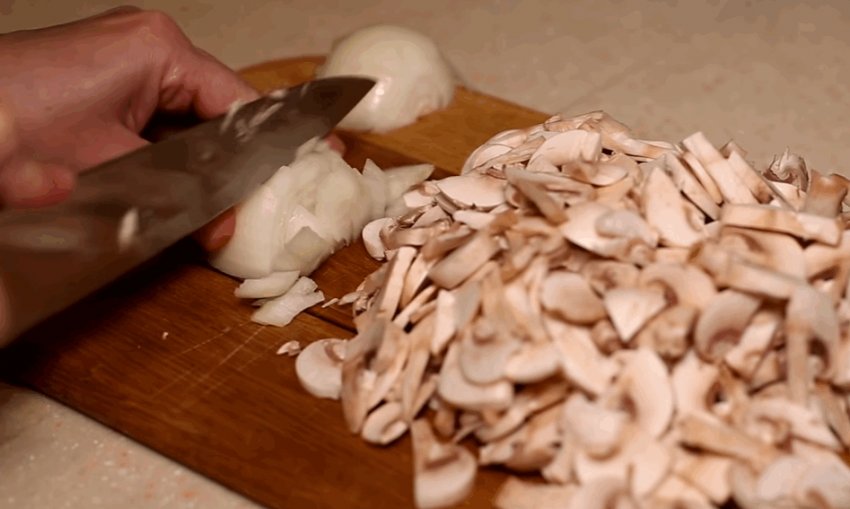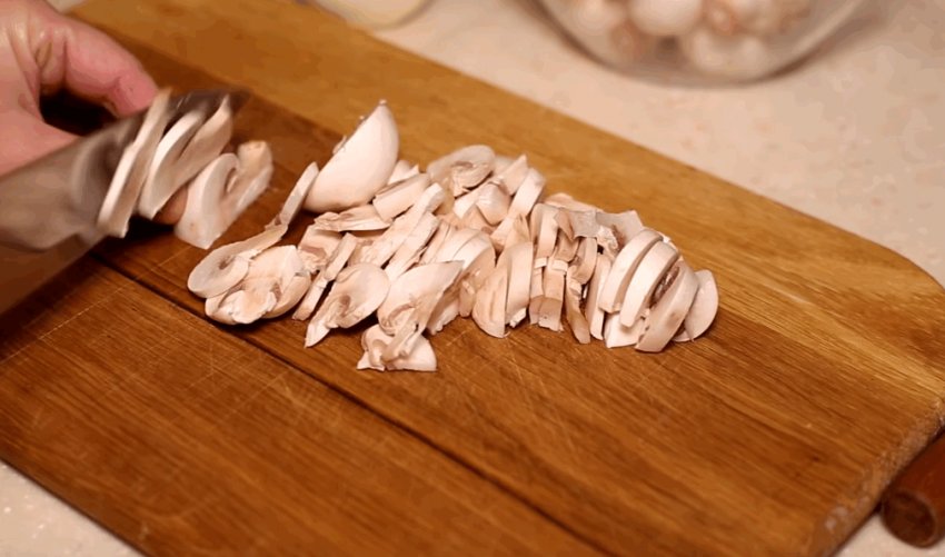 Печериці добре вимити і порізати півкільцями.![]()