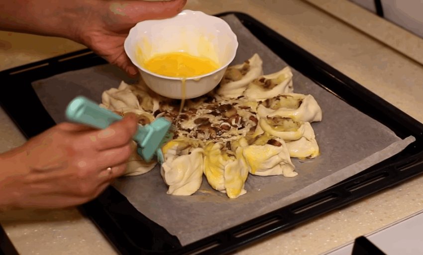 Краї випічки - "пелюстки" - змастити збитим яйцем.![]()