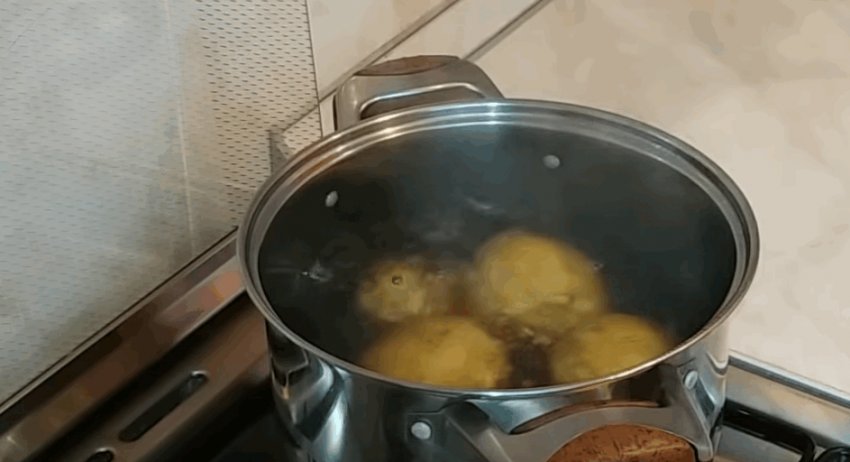 - Очищену картоплю зварити до напівготовності, рідину злити, коренеплоди залишити остуджуватися.