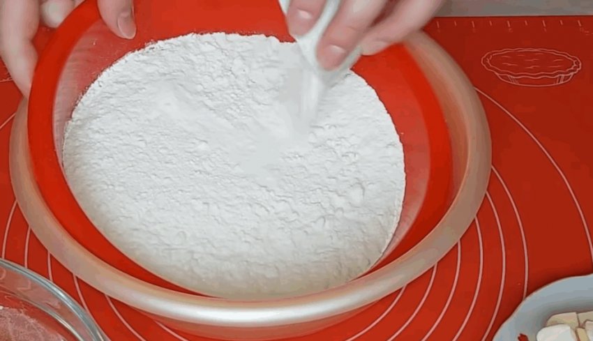 Просіяти борошно, всипати розпушувач і сіль.![]()