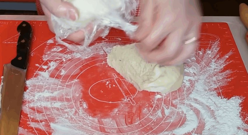 - Досипати борошна, зробити тісто і потримати його в теплі 40 хвилин. Ємність обов'язково накрити чистою тканиною.