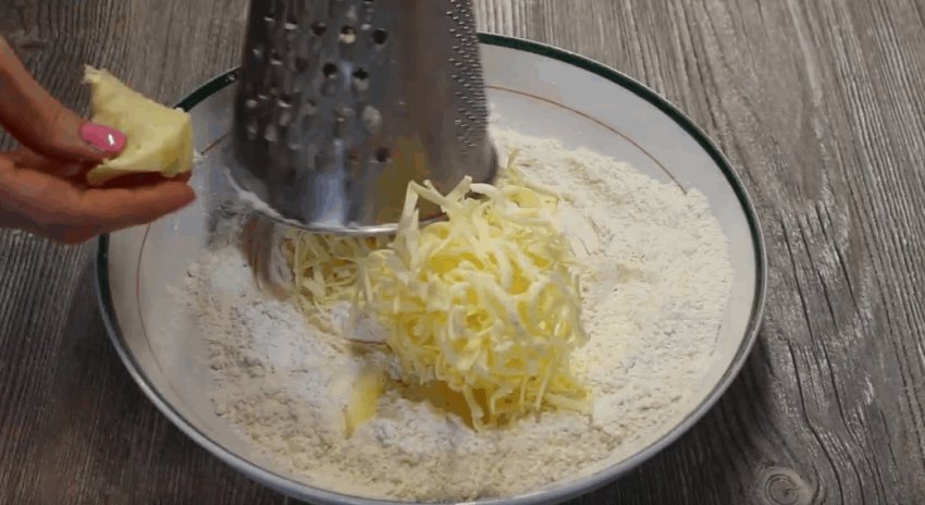 Охолоджене вершкове масло крупно натерти і з'єднати з борошном.![]()
