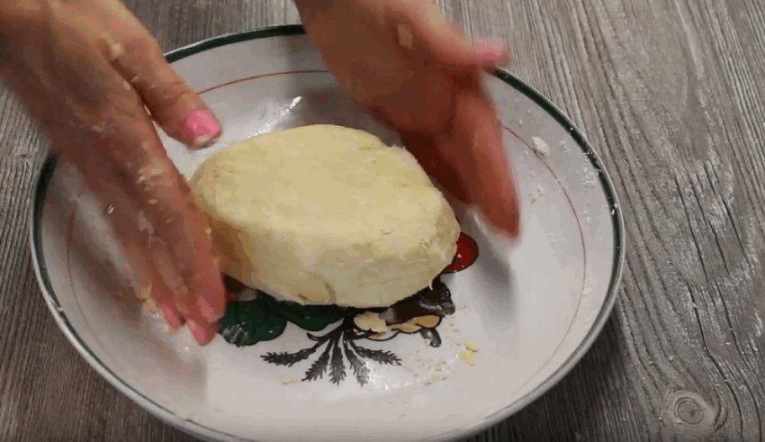 Покласти сметану, замісити тісто і відправити на холод на 30 хвилин, загорнувши в харчову плівку.![]()