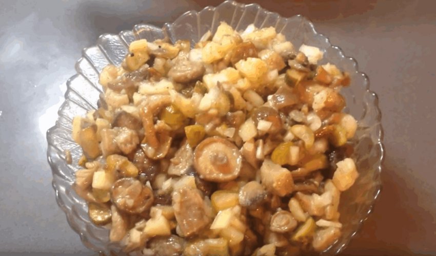 Холодні й теплі салати з маринованих грибів можна робити в будь-яку пору року. Деякі господині вважають за краще консервувати таку заготівлю на зиму, виконуючи маринування в оцті та спеціях.