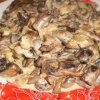 - Посмажену курку вивантажте в підберезники, посоліть, поперчіть, перемішайте.