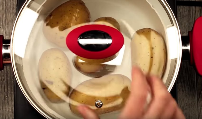 Зварити в каструлі картоплю до напівготовності, приблизно 10 хвилин.![]()