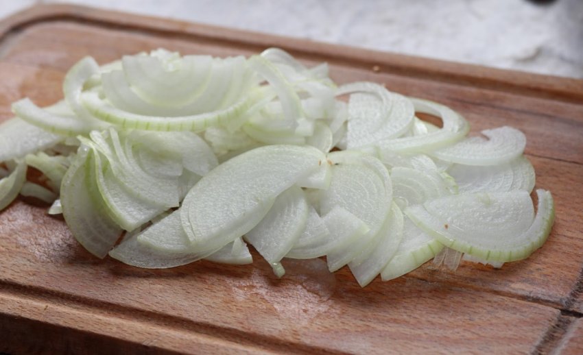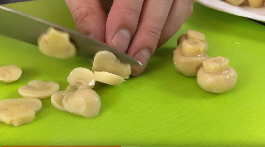 Нашаткувати печериці на шматочки середнього розміру.![]()