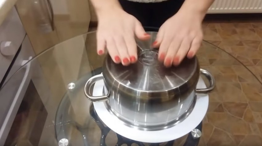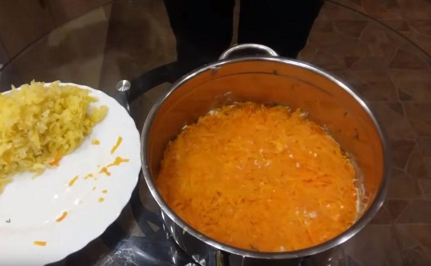 Відправити в холодильник просочитися на всю ніч. дістати, взяти тарілку і перевернути ємність із салатом догори дном, щоб уся страва опинилася на новому посуді.![]()