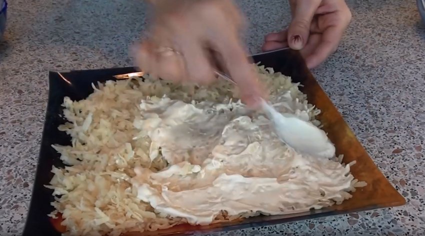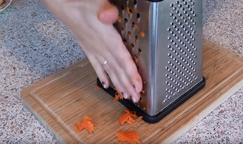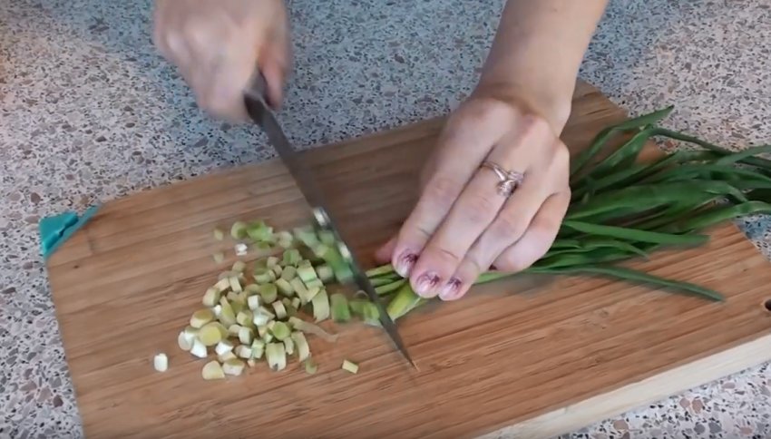 Продукт необхідно ретельно промити, висушити за допомогою паперових рушників. Потім порізати на тонкі пластинки або кубиками. Нагріти сковорідку, обсмажити з невеликою кількістю рослинної олії. Картоплю та моркву попередньо очистити від шкірки, потім разом із яйцями зварити та охолодити.