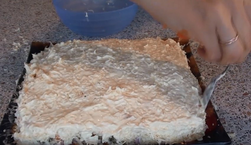 Рецепт салату з печерицями, шинкою, цибулею, яйцями та сиромВидео-рецепт: Рецепт салату з печерицями, шинкою, цибулею, яйцями та сиром
