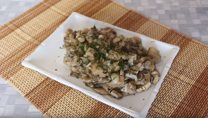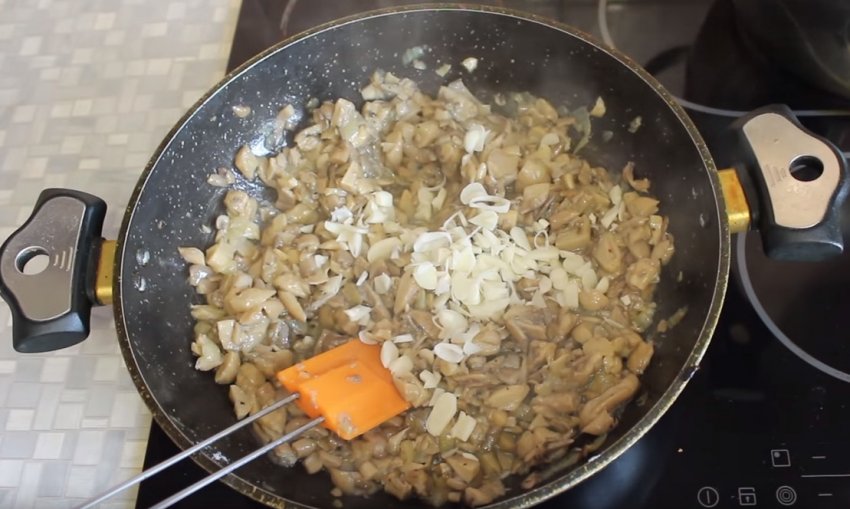 Через 10 хвилин гливи посолити, поперчити, додати часник, перемішати, накрити сковорідку кришкою і дати ще потушкувати 3-5 хвилин. Тільки тоді домашні гливи можна їсти. Подавати гриби можна як самостійну страву або як гарнір.![]()