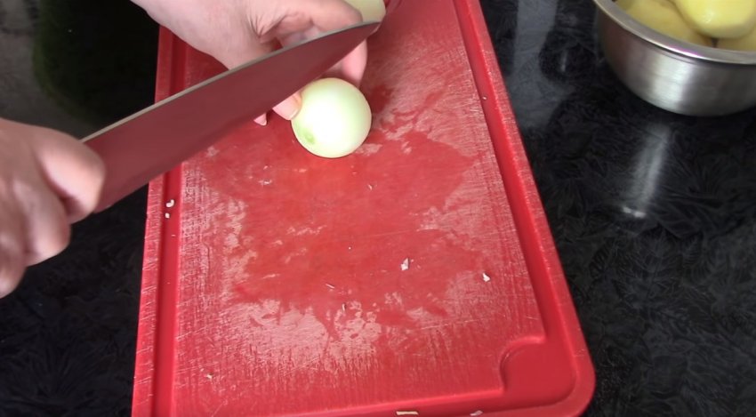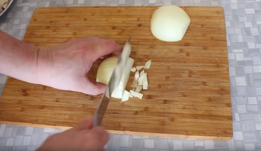 Очистити і розрізати невеликими кубиками цибулю. Занадто дрібно нарізати не варто, але все залежить від особистих уподобань.![]()