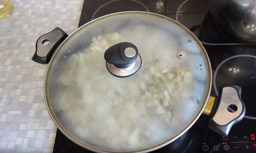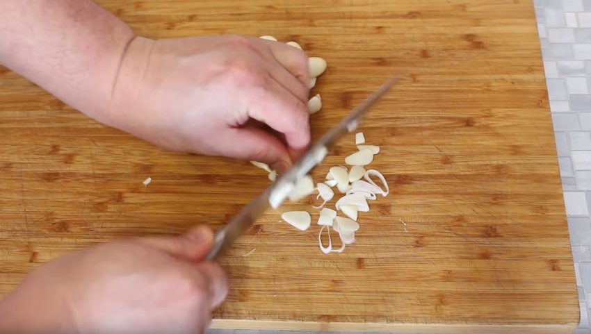 Поки гриби готуються, нарубати невеликими часточками часник.![]()