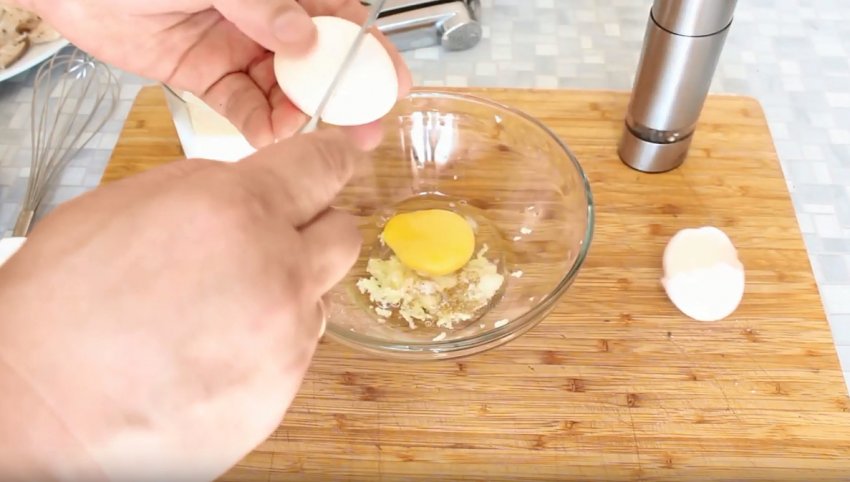 У той час, поки гриби маринуються, починають готувати кляр. У ємність вилити молоко, вбити яйця та подрібнений часник. Потім насипати борошно, спеції та все посолити. Гарненько, до однорідної маси збити вінчиком.![]()
