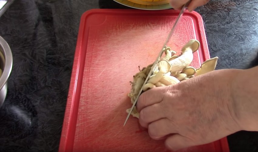 Промити гриби і відокремити грибницю від кореневища. Нарізати великими шматками. Якщо глива невелика, її можна залишити цілісною.![]()