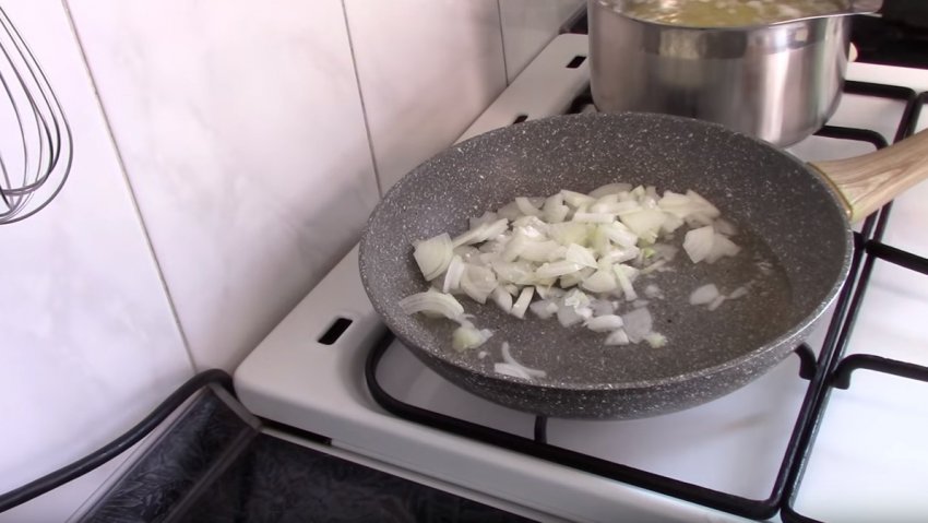 Цей простий, легкий суп зможе приготувати навіть господиня-початківець. Цибулини почистити і нарізати кубиками. У розпечену каструлю налити олію і обсмажити цибулю.![]()
