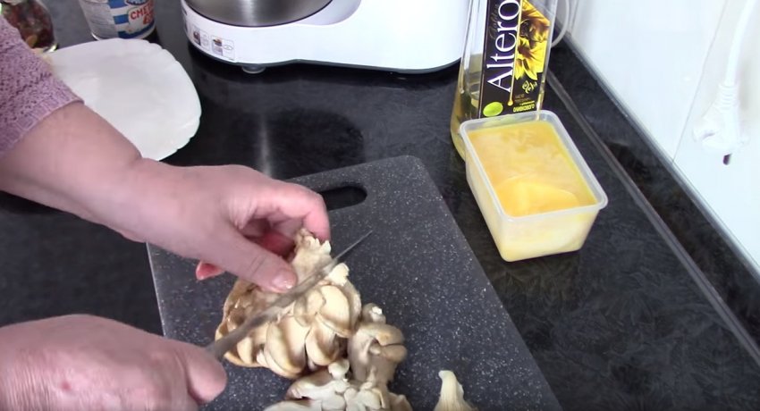 Такий спосіб приготування підійде тим, хто любить ніжні, соковиті гриби. Добре вимити гливи, зрізати тверде кореневище. Нарізати довільними шматочками.![]()