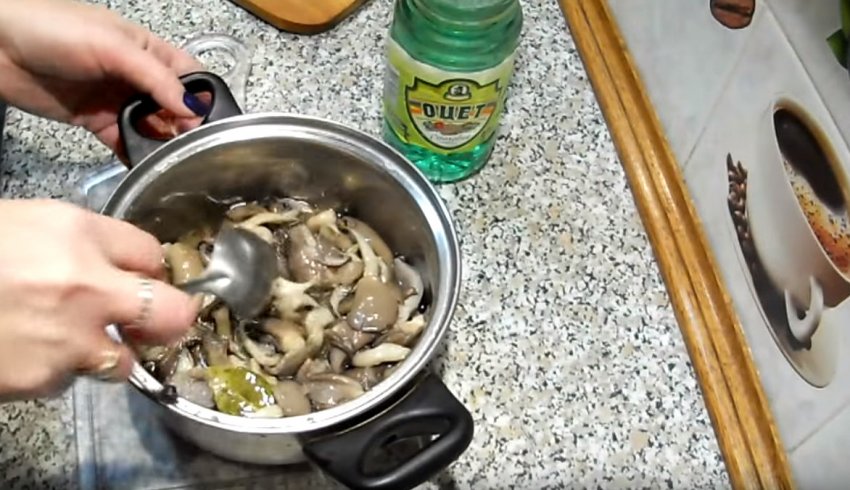 Відварити гливи хвилин 5-10 у чистій воді. Дати охолонути. У воду кладуть перці та гвоздику. Ставлять на вогонь для приготування маринаду.Коли закипить маринад, гриби насипають у каструлю і проварюють протягом 7-10 хвилин. При цьому кожен вітамін у грибах зберігається.![]()