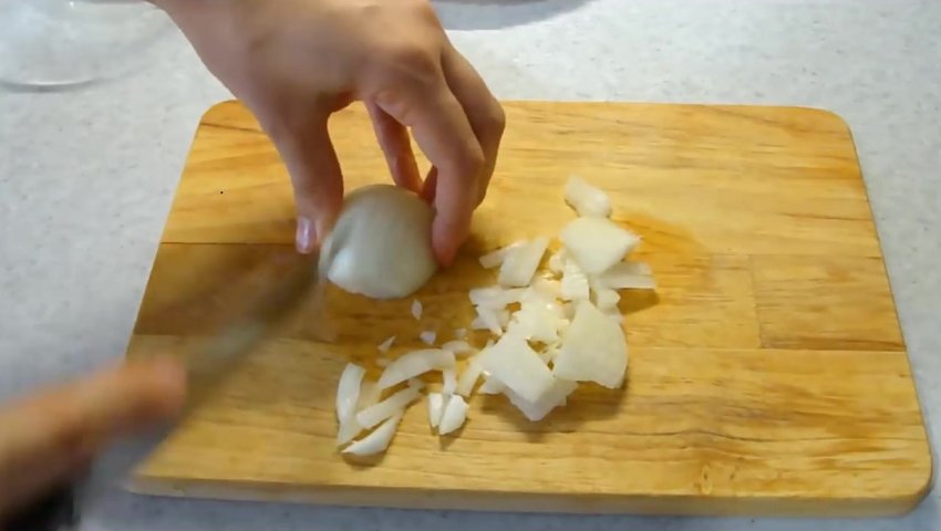 покришити дрібними кубиками і зарум'янити в соняшниковій олії на сковороді до м'якості.![]()