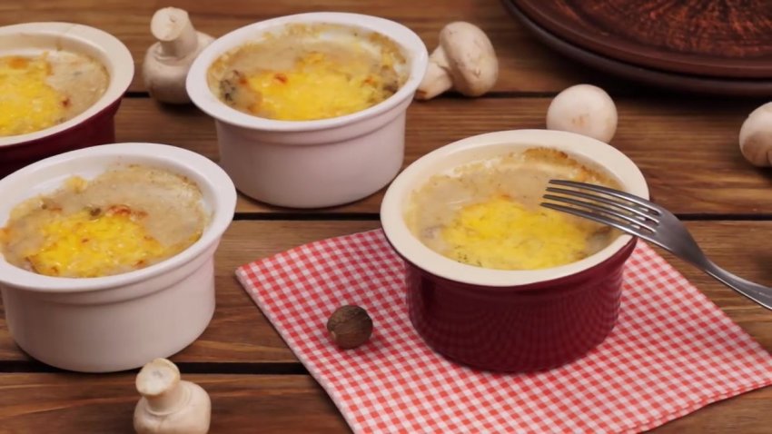 Рецепт грибного жюльєну з печерицьВидео-рецепт: Рецепт грибного жюльєну з печериць
