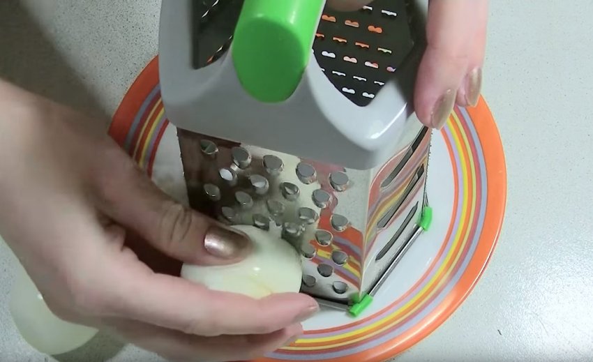 Яйця, картоплю і моркву натерти окремо на крупній тертці.![]()