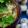 - Гриби викласти в горщики для запікання, залити сирною заливкою. Зверху присипати невеликою кількістю сиру, що залишився.