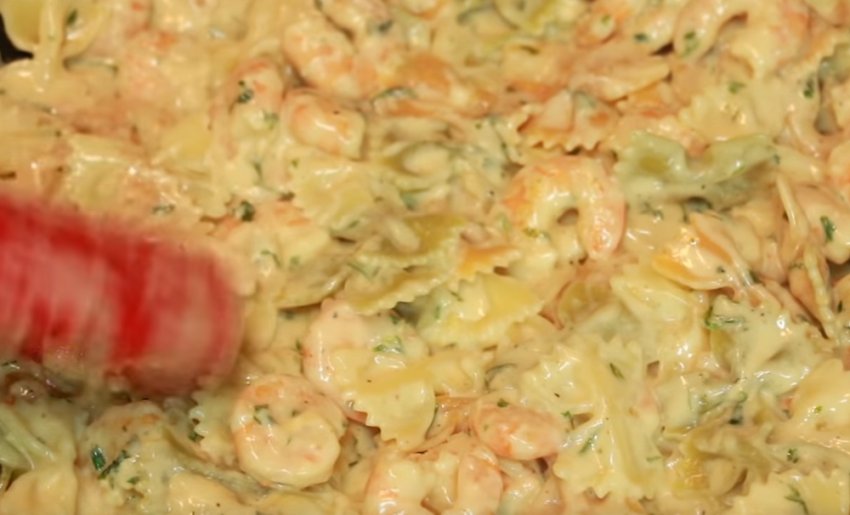 Макарони з креветками та грибами у вершковому соусі