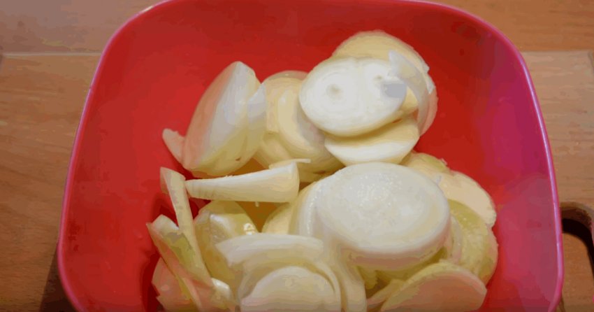 Очистити ріпчасту цибулю та нарізати кільцями.![]()