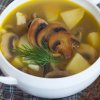- Поки картопля вариться, підготовлені гриби нарізати великими шматками і злегка обсмажити разом із подрібненою цибулею на олії.