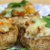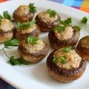 - Потім готовою сумішшю заповнити капелюшки печериць, злегка утрамбовуючи її.