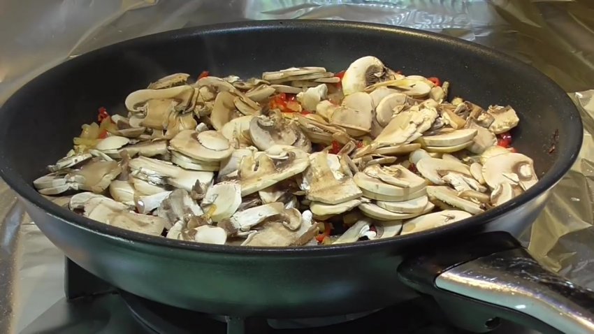 печериці, зменшити вогонь до середнього. Смажити, періодично перевертаючи.![]()