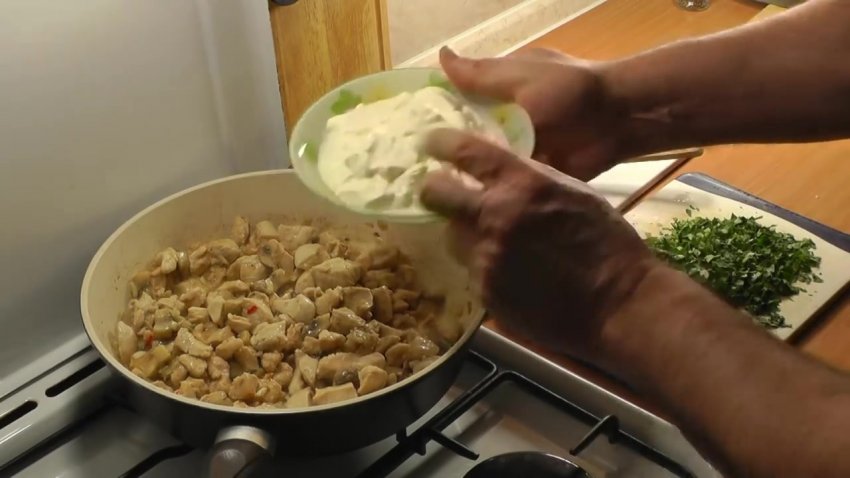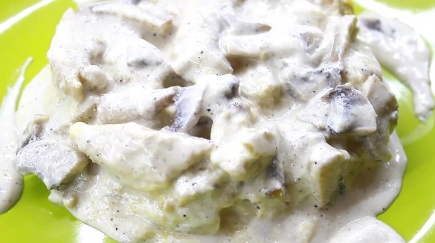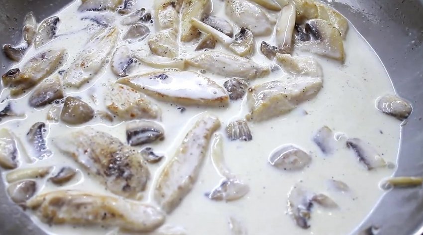 Куряча грудка та печериці добре поєднуються з вершками. Можна приготувати кілька варіантів страви: