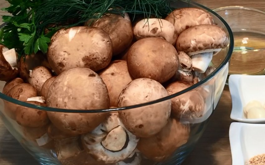 Для маринування найкраще підходять дрібні печериці, які після відповідної обробки стануть досить щільними і хрусткими. Перед використанням їх потрібно помити і почистити, після чого бажано злегка обсушити паперовими рушниками.