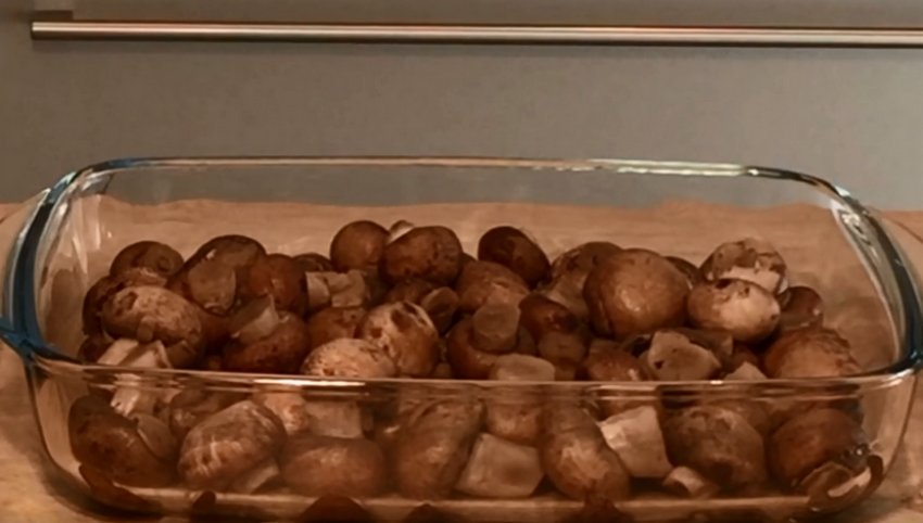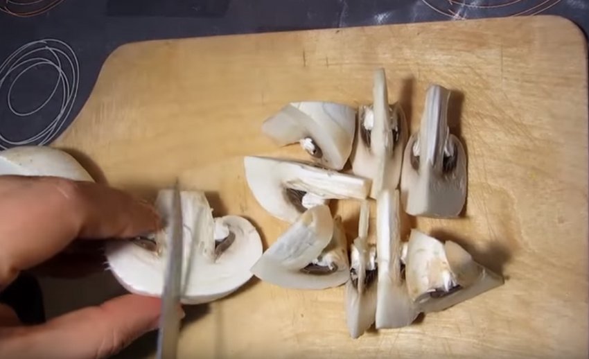 Помийте і обсушіть печериці, після чого великі екземпляри розріжте на кілька частин, тоді як дрібні можна залишити такими як є.![]()