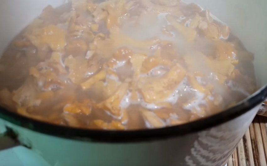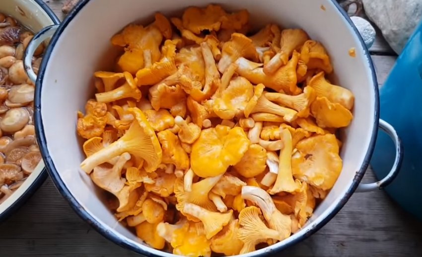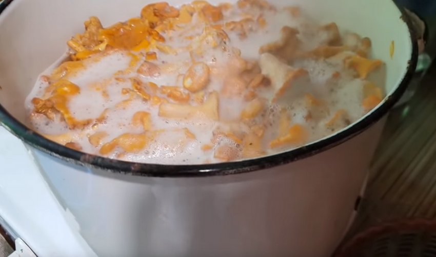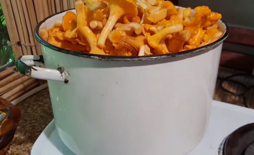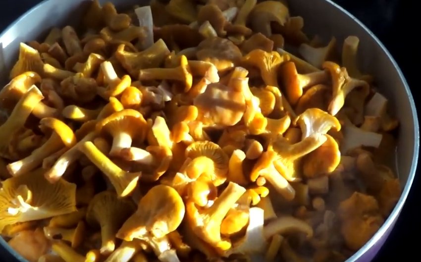 велику каструлю і наповніть її чистими лисичками. Частина грибів, яка залишилася, нехай поки залишається у воді.![]()