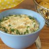 - Додайте бульйон і знову збийте. Потім додайте 1 склянку молока, продовжуючи збивати. Маса має вийти кремоподібною.