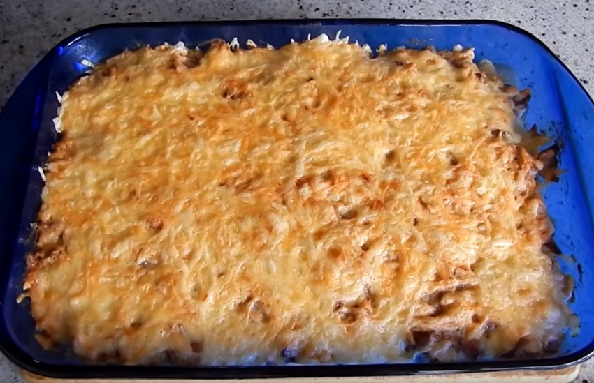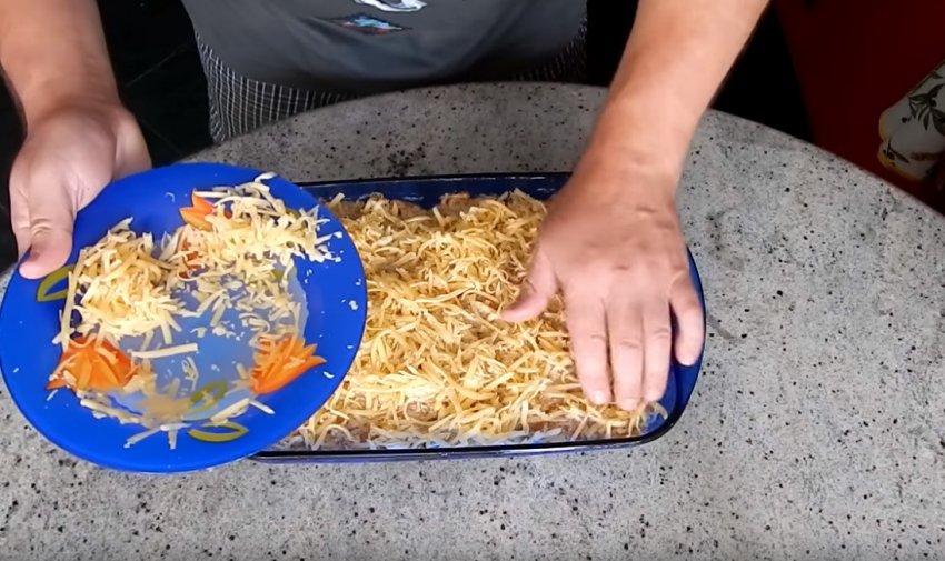 Зверху рясно присипати тертим сиром.Поставити в розігріту до +200°С духовку на 20 хв.![]()