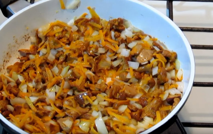 Відправити цибулю до лисичок. Готувати до золотистого кольору цибулі.![]()