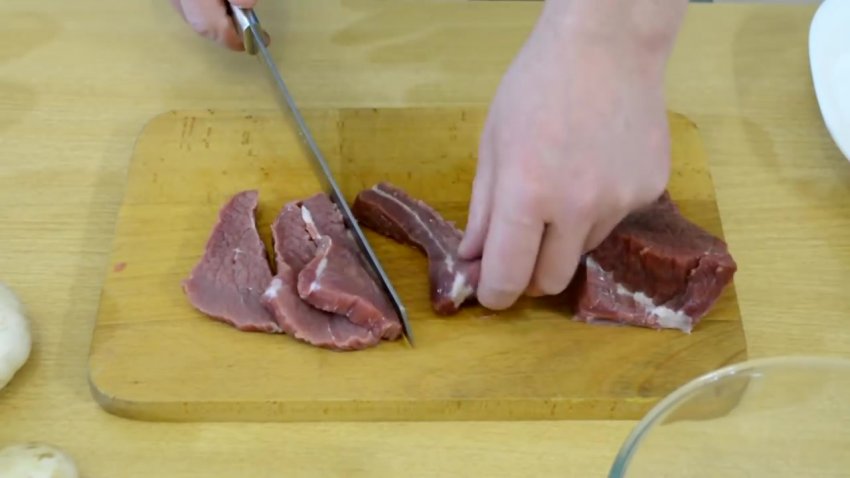 - М'ясо нарізати досить великими шматочками. Для чотирьох порцій шматків має бути чотири.