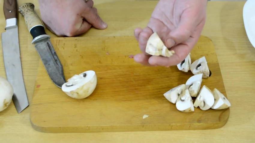 - Гриби порізати дрібними шматочками.