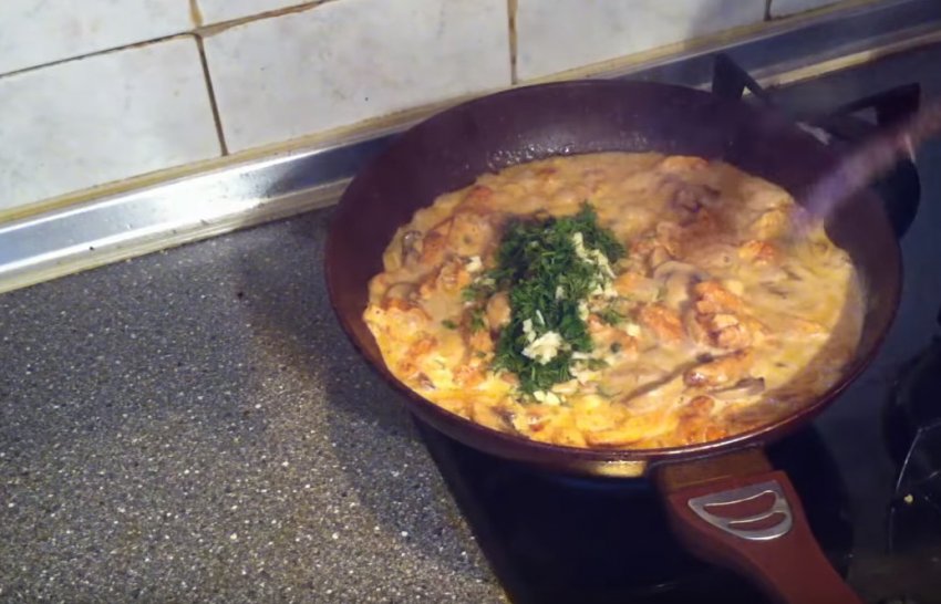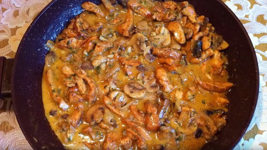 Куряче філе з грибами, тушковану в сметаніВидео-рецепт: Куряче філе з грибами, тушковану в сметані