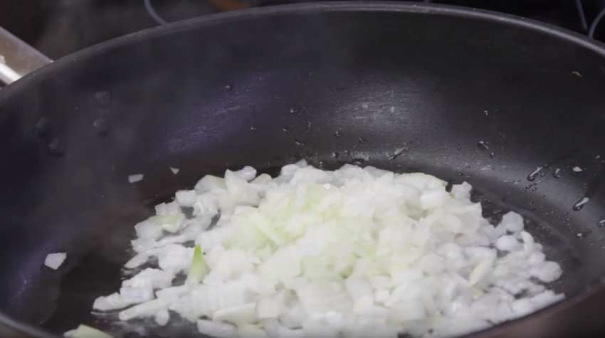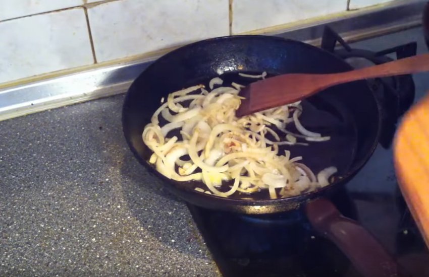 Підсмажте лук на рослинному маслі до золотистого кольору.![]()