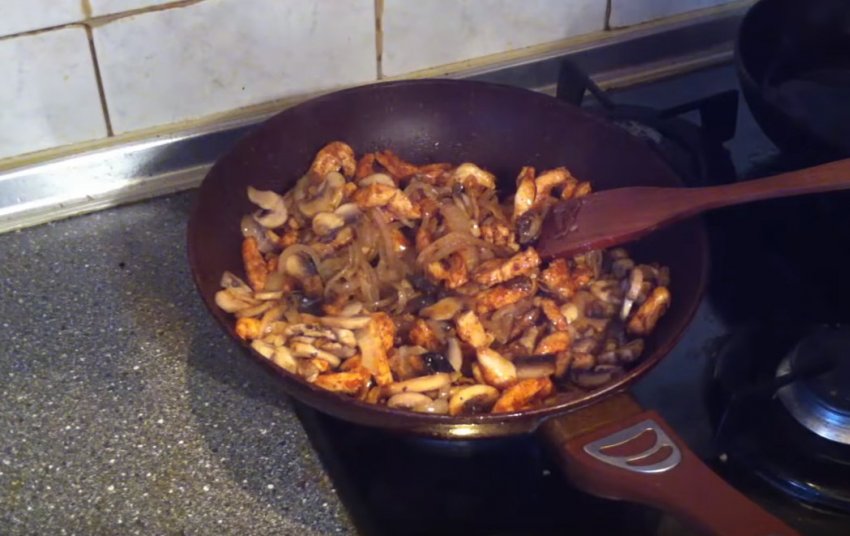 З'єднайте піджарку з лука та грибів з м'ясом.![]()