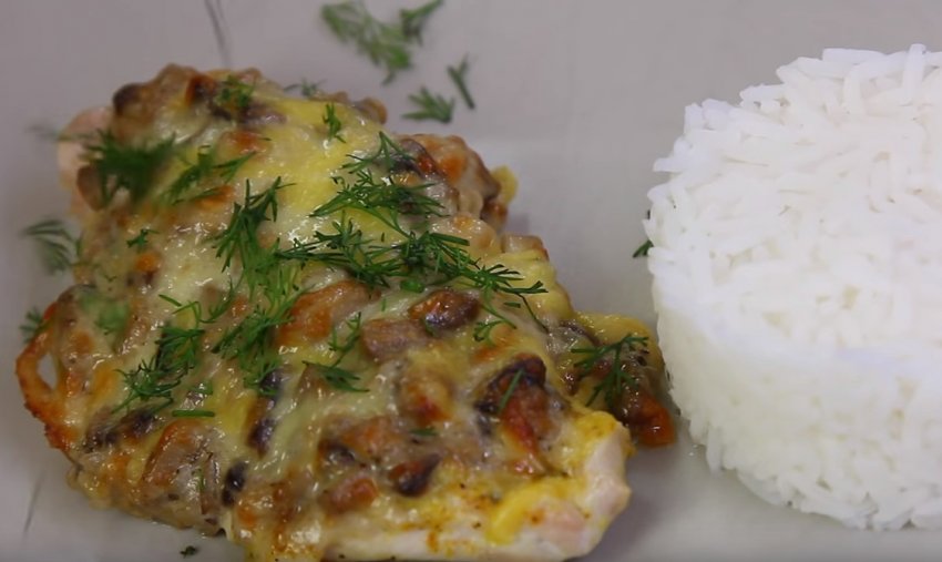 Куряче філе з грибами в духовціВидео-рецепт: Куряче філе з грибами в духовці