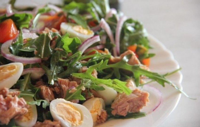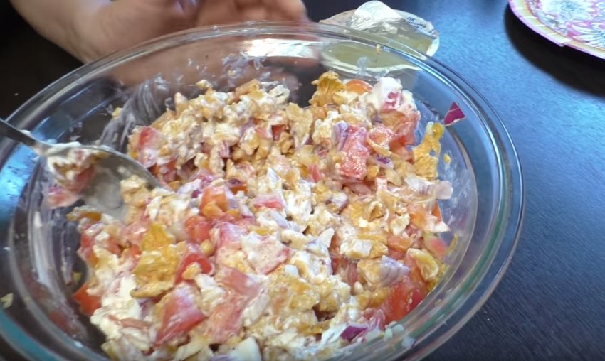 - Змішати інгредієнти із заправкою, додати за бажанням мелений чорний перець.