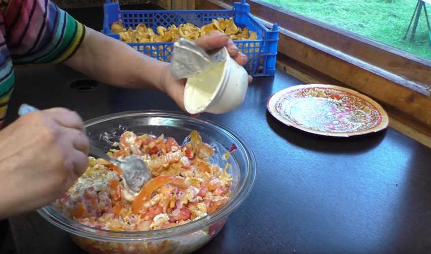 Страв і салатів, до складу яких входять лисички, безліч. Тут ми зібрали найпростіші в приготуванні салати та одну гарячу страву. Досвідчені господині можуть змінювати склад та інгредієнти заправок. Калорійність рецептів розрахована, виходячи з майонезу стандартної жирності (67%) і сметани 20%, сиру 50%. Для зменшення калорійності порцій склад заправки можна змінити. Час приготування розраховано за умови наявності вже підготовлених основних компонентів.