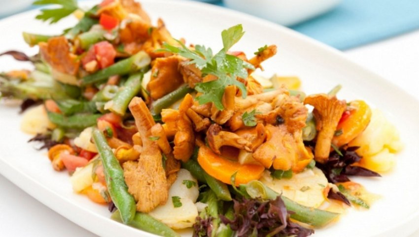 Лисички - це гриби, що належать до першої категорії їстівних. Це означає, що вони найбільш поживні та смачні серед грибів і дуже широко використовуються в європейській кухні. Цей вид грибів, на відміну від своїх родичів, не накопичує в собі радіонуклідів, а навпаки, сприяє їх виведенню. Експерти стверджують, що лисички нормалізують роботу печінки й навіть можуть вилікувати від гепатитів і позбавити гельмінтів. Серед страв, що готуються з лисичок, найбільш популярні різні салати. Пропонуємо вам рецепти деяких із них.